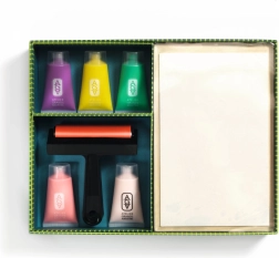 Opdag den kreative verden af monotypi med dette komplette geltryksæt fra Djeco. Ideelt til børn og begyndere, sættet indeholder alt, hvad du skal bruge for at skabe originale tryk: gelplade, rulle, farver og underlag. Teknikken er nem, legende og giver hurtige resultater med klare farver, let anvendelse og uendelige mønstermuligheder.