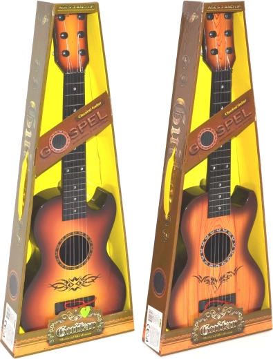 Opdag glæden ved musik med denne plastik børneguitar på 59 cm, der trofast imiterer et rigtigt instrument. Den har fire strenge, og i pakken medfølger et plekter – ideel til de første musikalske skridt for børn fra 3 år.
