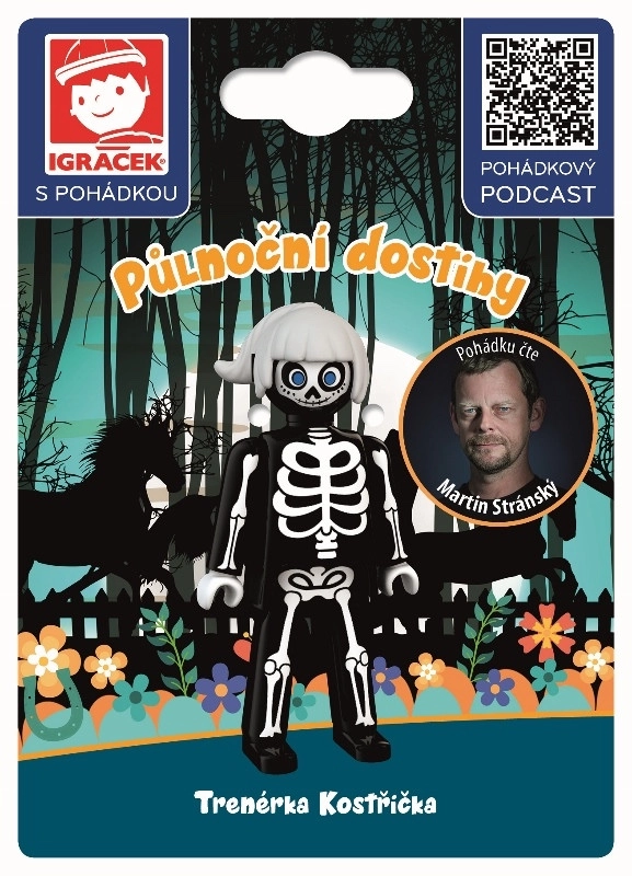 Figuren Igráček træneren Kostřička kommer med det originale eventyr Midnatsgalopløbet, indtalt af skuespilleren Martin Stránský. Børnene drager ind i verdenen med hesten Koště, jockeyen Kostřík og træneren Kostřička, som forbereder sig til det berømte midnatsløb. Sjov, spænding og fin humor stimulerer fantasien og støtter selvstændig fortælling.