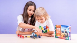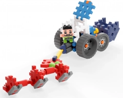 Af 50 farverige og fleksible dele bygger du nemt en traktor med frontskovl og bagmonteret plov. Modellen er ideel til leg og gentagne ombygninger.