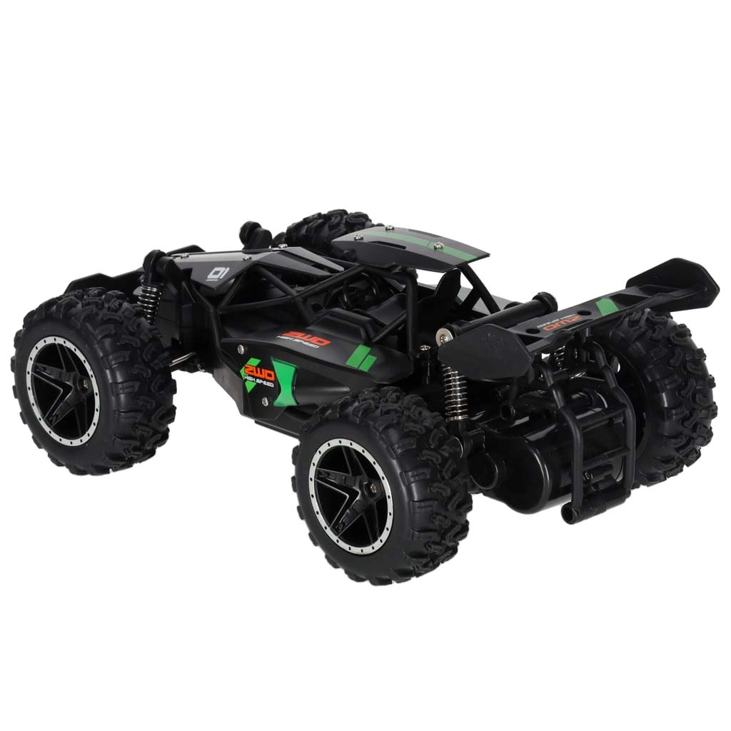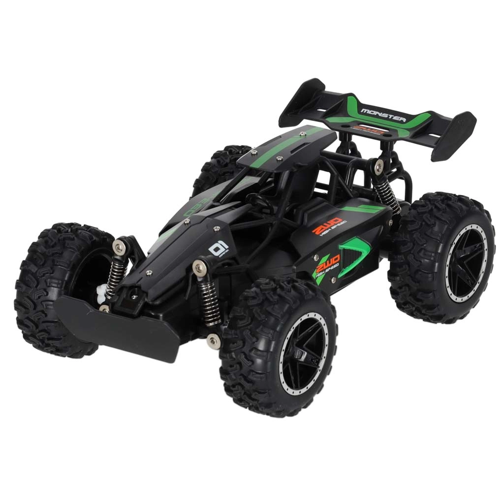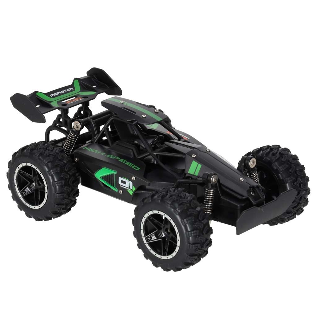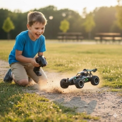 Oplev adrenalinen med en kompakt RC-buggy, der når op til 18 km/t. Takket være 2,4 GHz styring, store dæk med groft mønster og fjedret affjedring klarer den kørsel på grus, græs og ujævnt terræn. Nem styring, hurtig respons og robust konstruktion garanterer sjov for både børn og voksne.