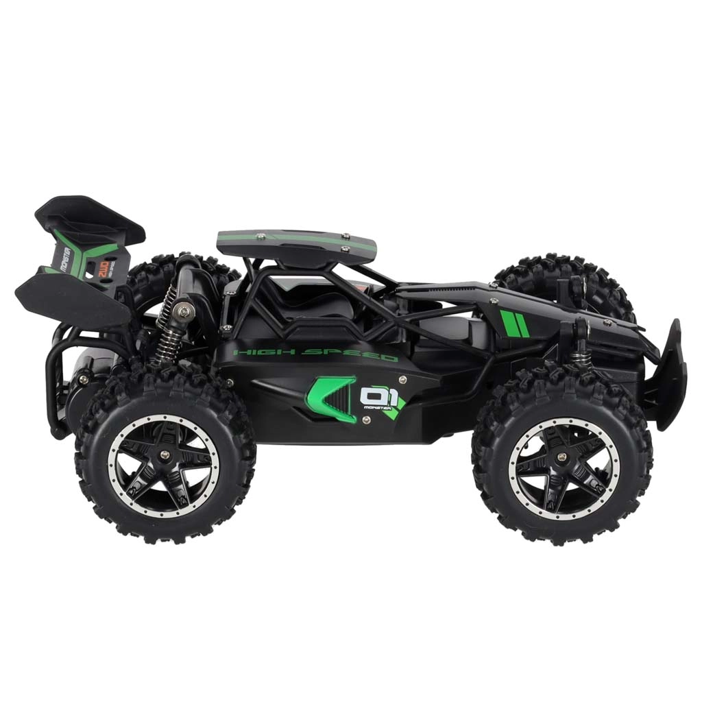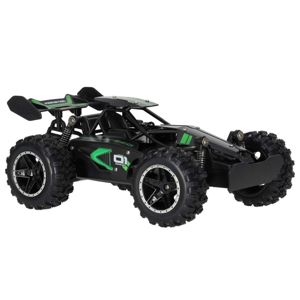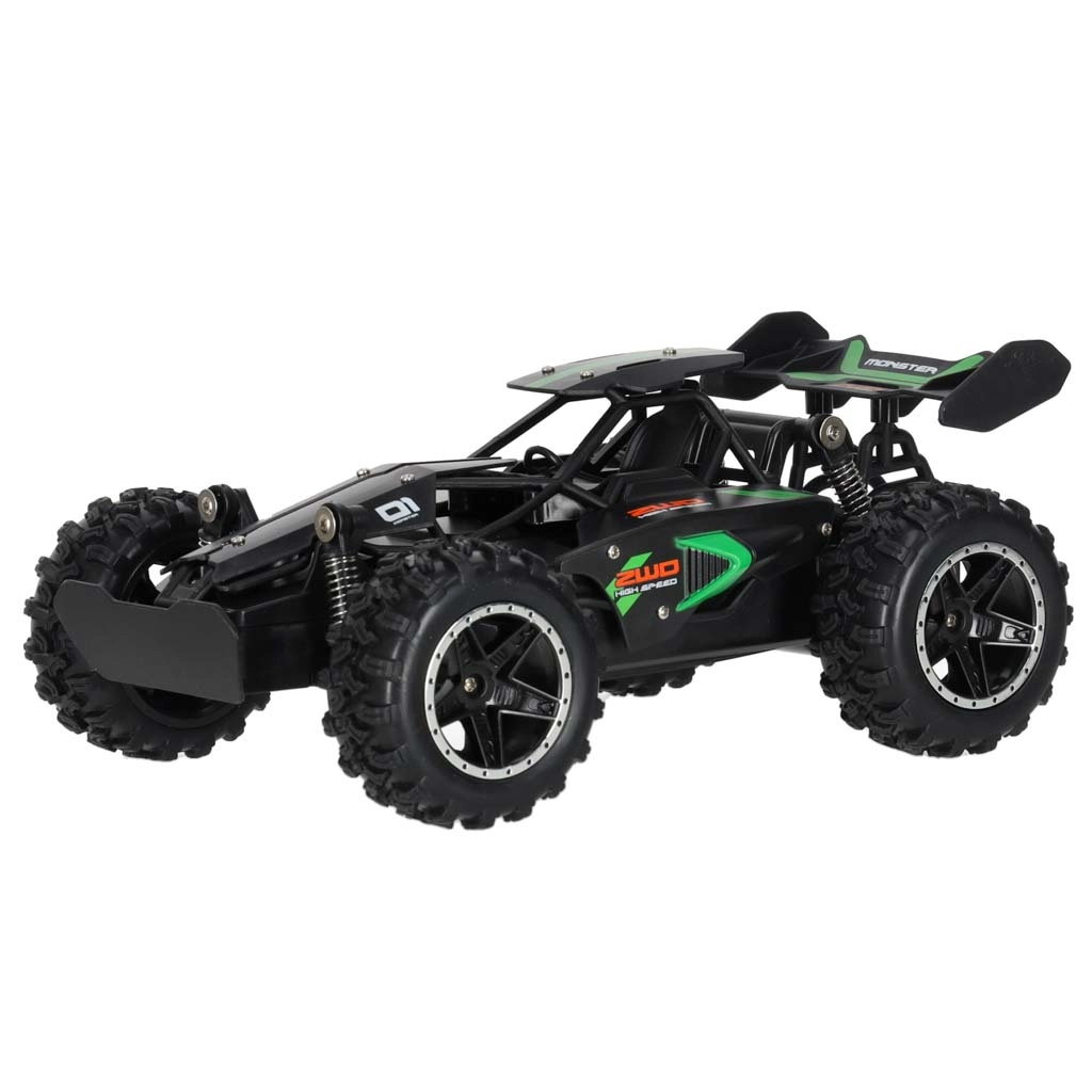 Oplev adrenalinen med en kompakt RC-buggy, der når op til 18 km/t. Takket være 2,4 GHz styring, store dæk med groft mønster og fjedret affjedring klarer den kørsel på grus, græs og ujævnt terræn. Nem styring, hurtig respons og robust konstruktion garanterer sjov for både børn og voksne.