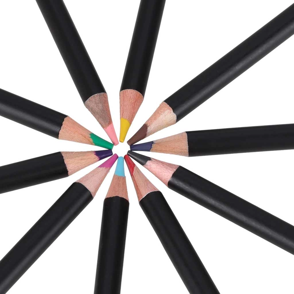 Dette omfattende sæt blyanter er ideelt til børn, studerende og kreative voksne. De robuste træblyanter med sort lak og farvede ender giver et behageligt greb og præcise streger. Etuiet med lynlås holder alt på plads og beskytter blyanterne under transport.