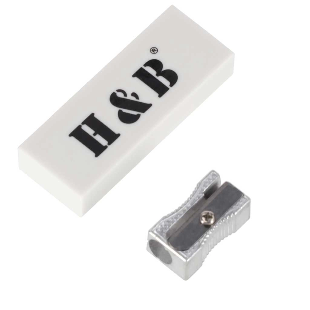 Sættet indeholder et kvalitetsviskelæder og en metalspidser, så du kan tegne, rette og spidse når som helst og hvor som helst.