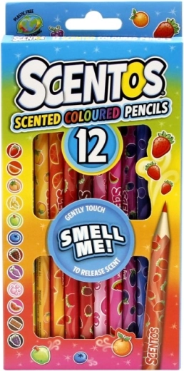 De duftende SCENTOS-farveblyanter kombinerer tegning med behagelige frugtagtige dufte, som motiverer børn til mere kreativitet. Hver blyant har et farverigt print, der matcher dens duft (f.eks. jordbær, appelsin, blåbær, fersken eller grønt æble) og giver intense, klare farver for markante resultater på papiret.