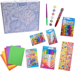 Det duftende kreative sæt SCENTOS – mellem er et perfekt valg til små kunstnere, der elsker farver og dufte. Med det brede udvalg af skrive- og maleartikler kan børn afprøve forskellige teknikker og skabe originale værker. Duften fra de enkelte redskaber giver skabelsen en ny dimension og motiverer til yderligere udforskning.