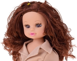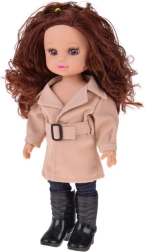 Den søde dukke Kalinka er klar til efterårseventyr. Hun har fyldigt, krøllet kastanjebrunt hår, bevægelige lemmer og bærer en elegant beige trenchcoat med bælte, leggings og sorte sko. Takket være lydfunktionen afspiller hun en glad melodi, når man trykker på maven. Perfekt til kreativ leg, styling og omklædning.