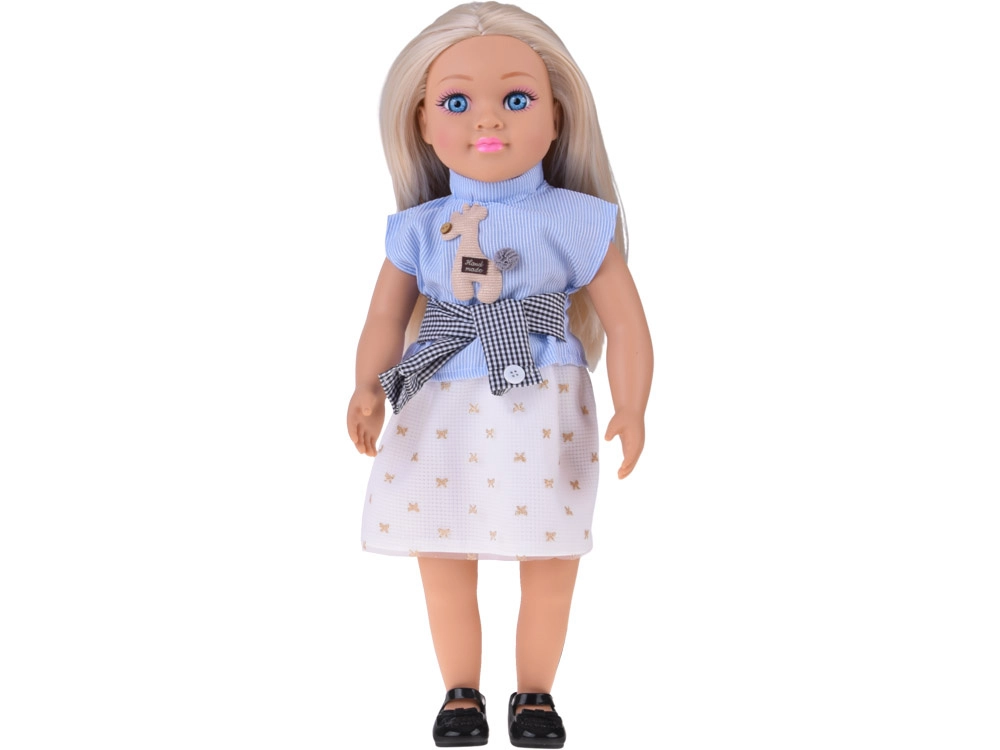 Oplev charmen ved den klassiske modedukke, der kombinerer elegance, kvalitet og leg. Takket være det lange blonde hår er den perfekt til børstning og frisurer, mens de store blå øjne og det milde smil giver et sødt udtryk. Den bløde krop og de kvalitetsplastdele sikrer behagelig håndtering og holdbarhed i hverdagsleg.