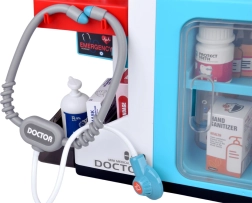 Dette interaktive sæt forvandler børneværelset til en lille klinik, ambulance og apotek. Børn kan undersøge patienter, måle temperatur, “ordinere medicin” og øve betaling ved kassen. Realistiske lyde og en overskuelig station med skabe øger autenticiteten og gør legen engagerende.