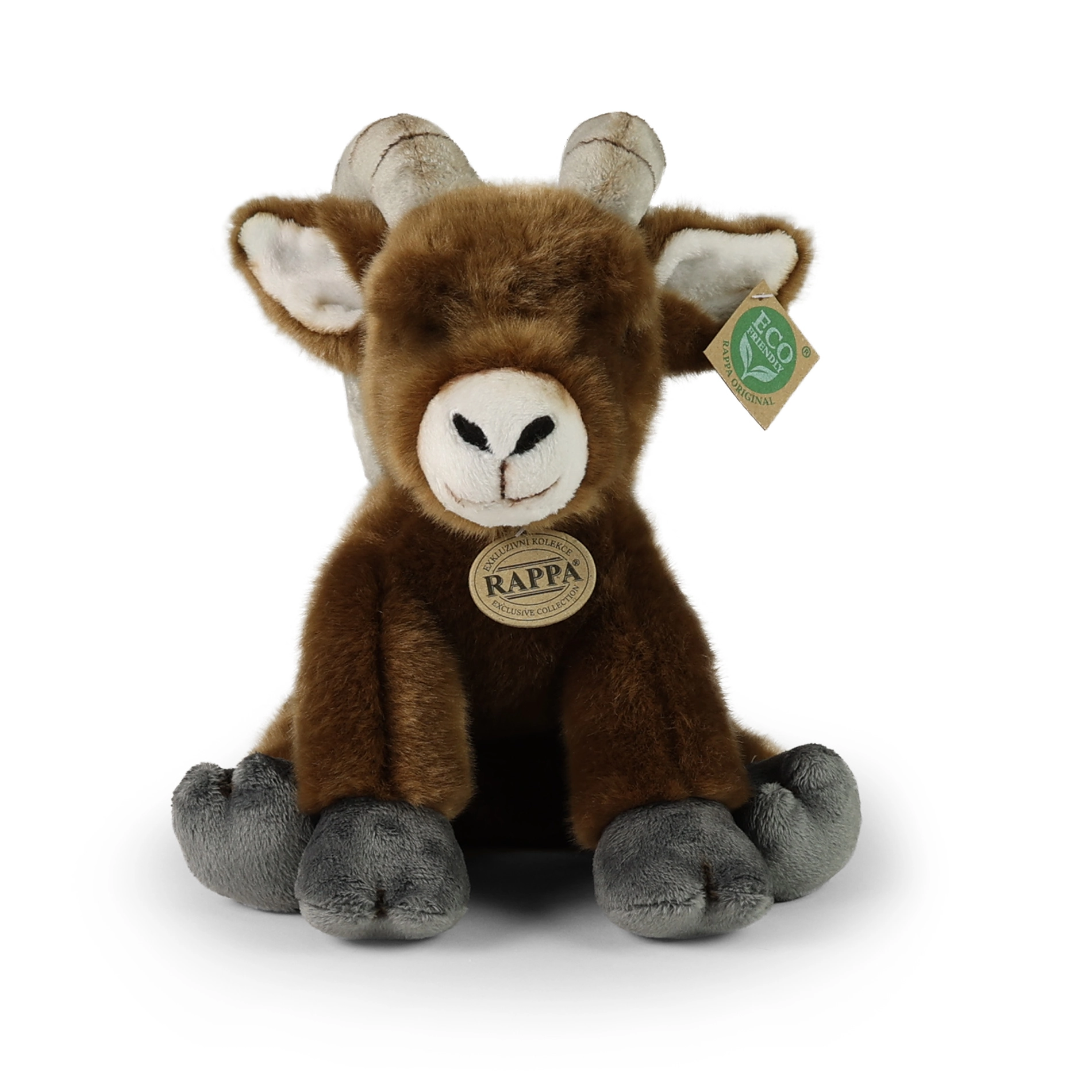 Sødt plysbjergfår på 28 cm er lavet af kvalitetsmaterialer, der føles bløde at røre ved, og tilhører RAPPA’s eksklusive kollektion. Takket være håndlavet udførelse virker den livagtig, har realistiske detaljer og er fyldt med sikker fyld af genanvendte materialer. ECO-FRIENDLY-design skåner naturen, fyldet af genanvendte PET-flasker er ufarligt selv for nyfødte, og legetøjet er ideelt til kram og som gave.