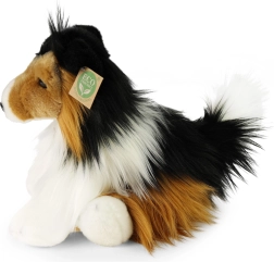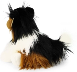 Den lange og superbløde pels i nuancer af hvid, brun og sort giver plyscollien et livagtigt udseende og en uimodståeligt behagelig følelse for både børn og voksne.