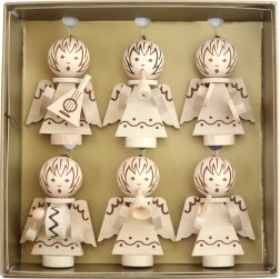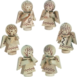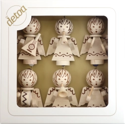 De træbaserede juleornamenter fra Detoa med motiv af små engle, der spiller på musikinstrumenter, giver både træet og interiøret en traditionel og varm atmosfære. Takket være det naturlige materiale passer de ind i både klassisk og moderne udsmykning og bliver en favoritdetalje i din juledekoration.