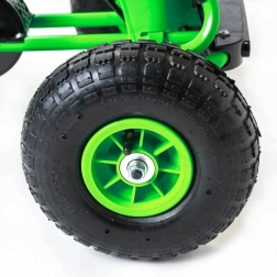 Store oppustelige hjul med lejer (25 × 8 cm) giver fremragende greb, dæmper ujævnheder og sikrer stabilitet ved kørsel både udendørs og på gårdspladsen.