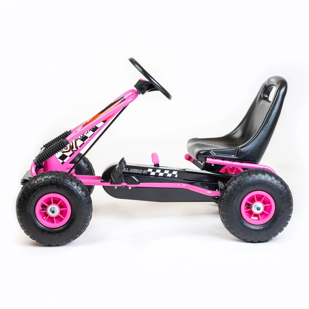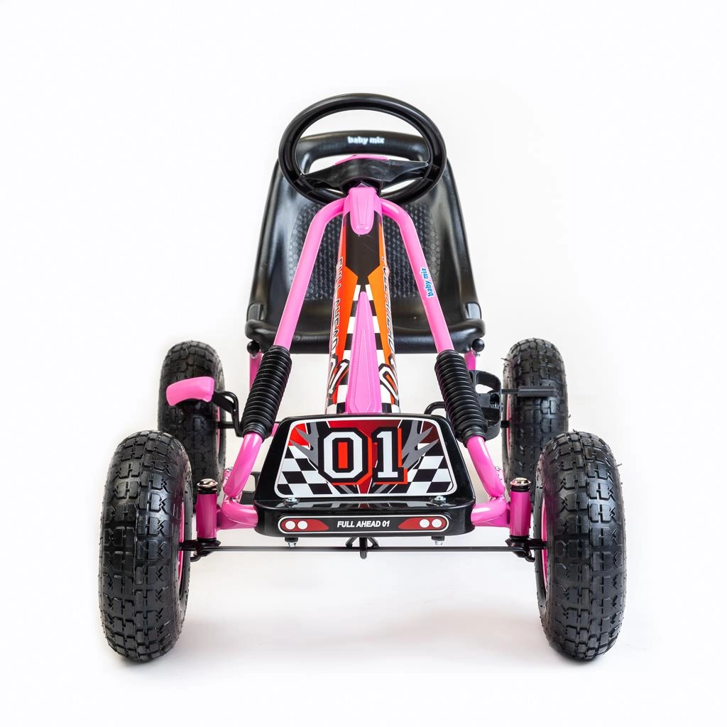 Oplev glæden ved bevægelse med Baby Mix Razor-gokarten. Takket være det ergonomiske sæde med 2-trins justering og sportsrat kan børn køre komfortabelt både inde og ude. De store oppustelige gummihjul med lejer (25 × 8 cm) sikrer stabilitet, affjedring og sikkert vejgreb.