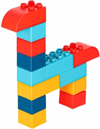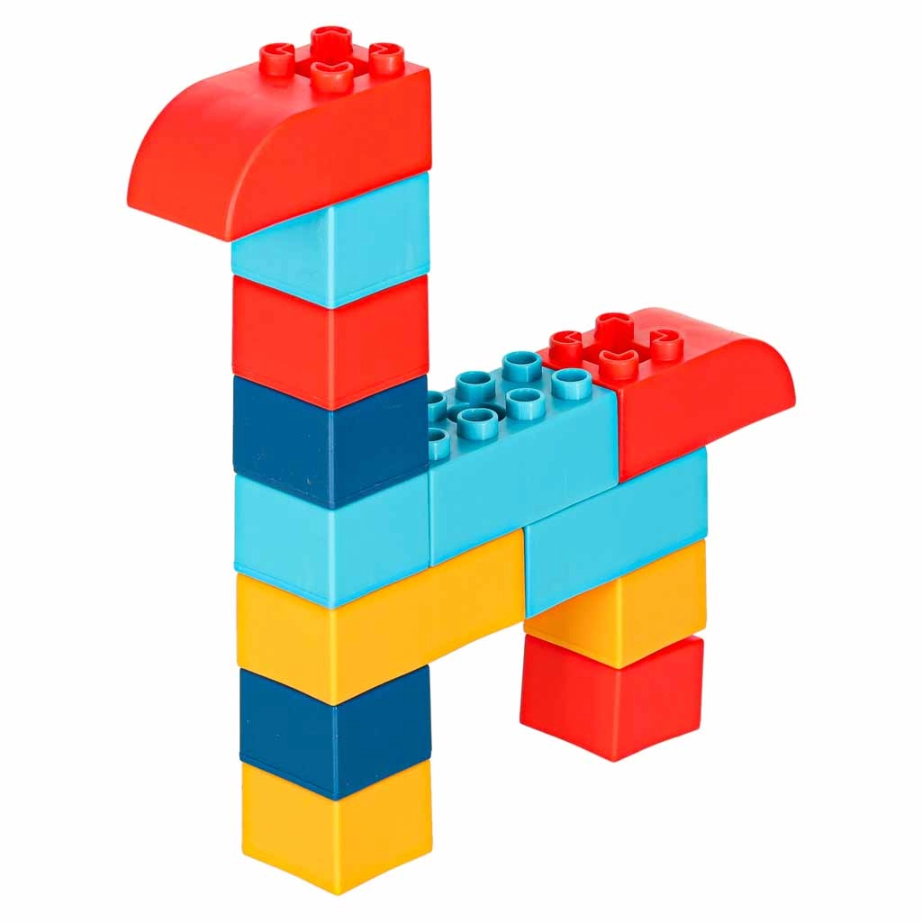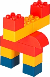 I pakken finder du en farverig blanding af klodser, tandhjul, tekniske bjælker og specialdele, inklusive en blok med hjul og dekorative “øjne”. Vejledningen tilbyder mange idéer, men fantasien sætter grænserne – fra dyr og køretøjer til simple mekanismer.