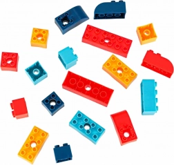 - Motorblok, blok med hjul, tandhjul, koblinger, konstruktionsklodser, dekorative øjne, sæt skruer, skruetrækker, USB-kabel, vejledning