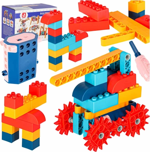 Udvid børns fantasi og tekniske færdigheder med et STEM-byggesæt med 116 dele, integreret motor og opladning via USB. Med farvede klodser, gear og koblinger kan der skabes bevægelige modeller, køretøjer og enkle maskiner. Sættet indeholder en genopladelig motorblok, tandhjul, skruer og skruetrækker til montering samt en vejledning med inspiration. Ideelt til børn fra 6 år.