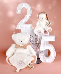 En sød lyserød bamse med et blødt tæppe og en praktisk sutteholder vil glæde enhver baby fra fødslen. Den kombinerer blødt premium-materiale, funktionalitet og sikker design i et elegant gavesæt. Ideel som gave til nyfødte, understøtter rolig indsovning og udvikling af finmotorik.