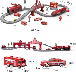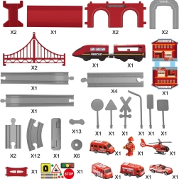 Der medfølger også en brandstation med brandmandsfigur og redningskøretøjer, som fuldender fortællingerne om indsatser på banen og i byen. Med de mange dele kan der samles overskuelige rundbaner samt flerniveaustrækninger med brokonstruktion.