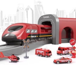 Byg din egen redningsby med bro, tunnel, station og trafikskilte. Toget med elektrisk drift trækker nemt vognene takket være magnetiske koblinger, og børnene nyder realistiske lyde under kørslen på forskelligt formede skinner.