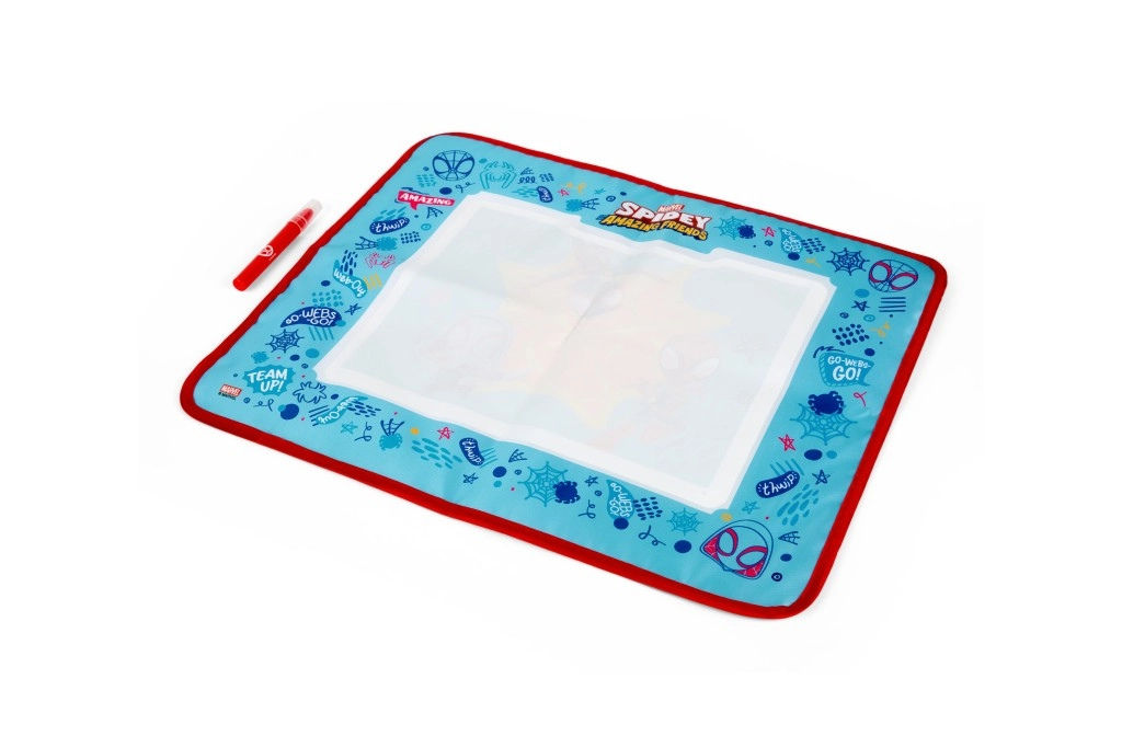 Denne kreative måtte med SPIDEY-motiv er en fantastisk måde at engagere børn i maling uden farver og pletter. Den særlige vandpen efterlader farverige spor på måtten, som forsvinder, når de tørrer, så legen kan fortsætte igen og igen.