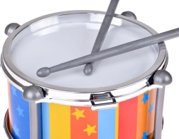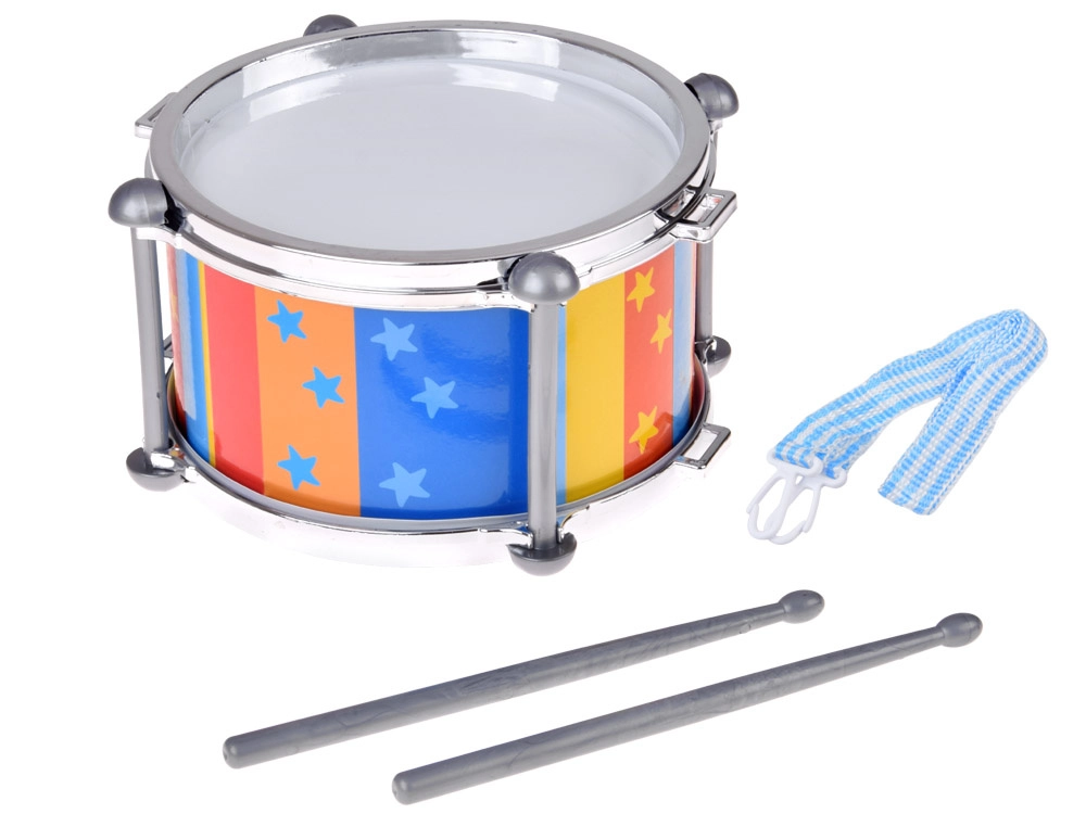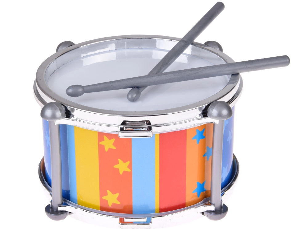 De farvede lodrette striber med stjerner og de metal-look skinnende bånd gør trommen til en attraktiv legeting og gave. At spille på tromme udvikler finmotorik, hånd–øje-koordination, høresans og naturlig musikfornemmelse.