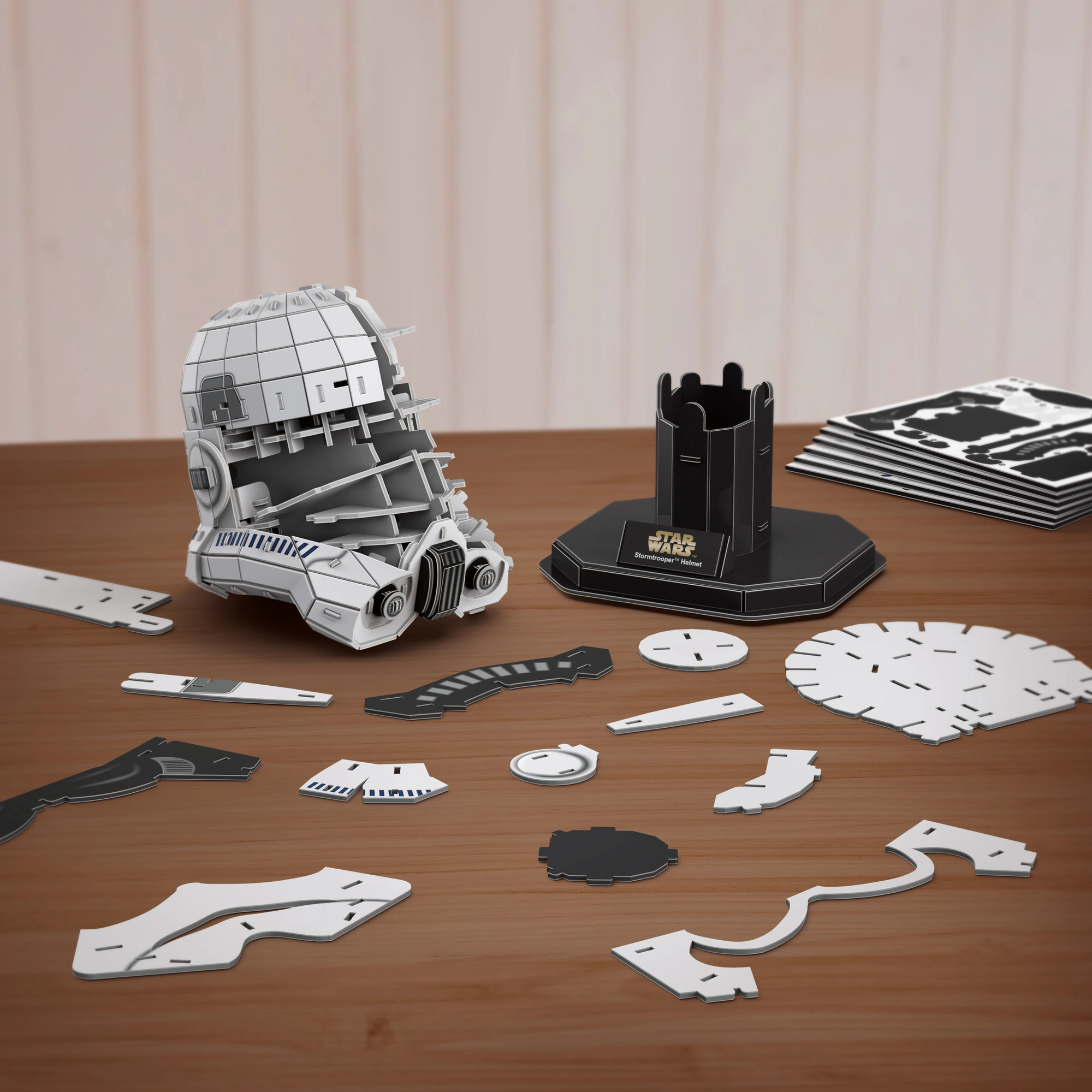 Denne nøje designede 3D-model af en Stormtrooper-hjelm vil begejstre enhver Star Wars-fan. Sættet indeholder 121 forududskårne dele på 6 ark, som nemt trykkes ud og samles efter den overskuelige vejledning. Resultatet er en kompakt model på 12 × 12 × 16 cm med stander og navneskilt til en imponerende udstilling.