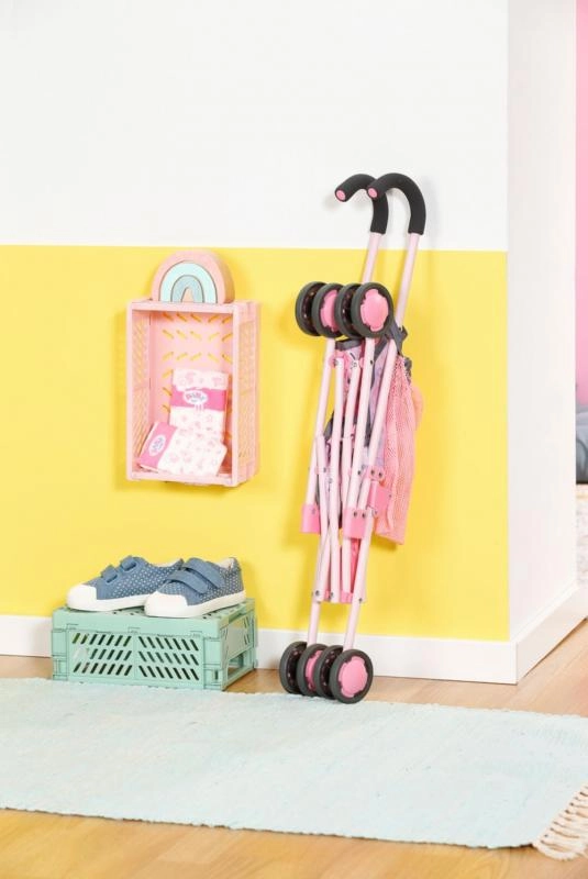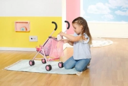BABY born dukkevogn er ideel til hverdagsture og leg derhjemme. Den lette metalkonstruktion, de komfortable skumhåndtag og fire dobbelthjul gør den nem at manøvrere, selv for små børnehænder. Sædet med muntert print er udstyret med sikkerhedsseler, som holder dukken sikkert på plads.