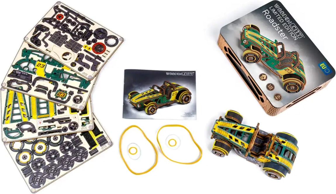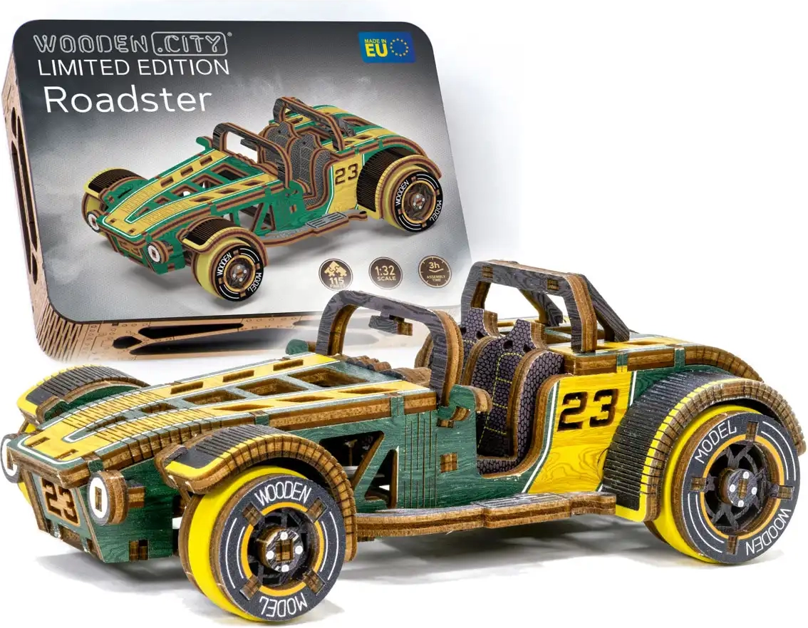 Træ 3D-puslespil Roadster – limited edition giver både byggeglæde og tilfredsstillelsen ved en færdig mekanisk model. Med præcist laserudskårne dele i miljøvenlig birkekrydsfiner samler du uden lim en gennemarbejdet bil med realistiske detaljer og jævn gang.