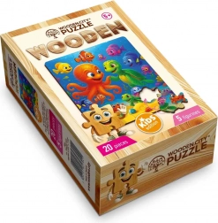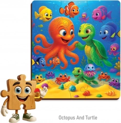 Træpuslespillet WOODEN CITY med motiv af blæksprutte og skildpadde tager børn med til en fascinerende undervandsverden. Hver brik er fremstillet med maksimal præcision, så den passer perfekt sammen og skaber en betagende scene på ca. 19,3 × 17,4 cm.
