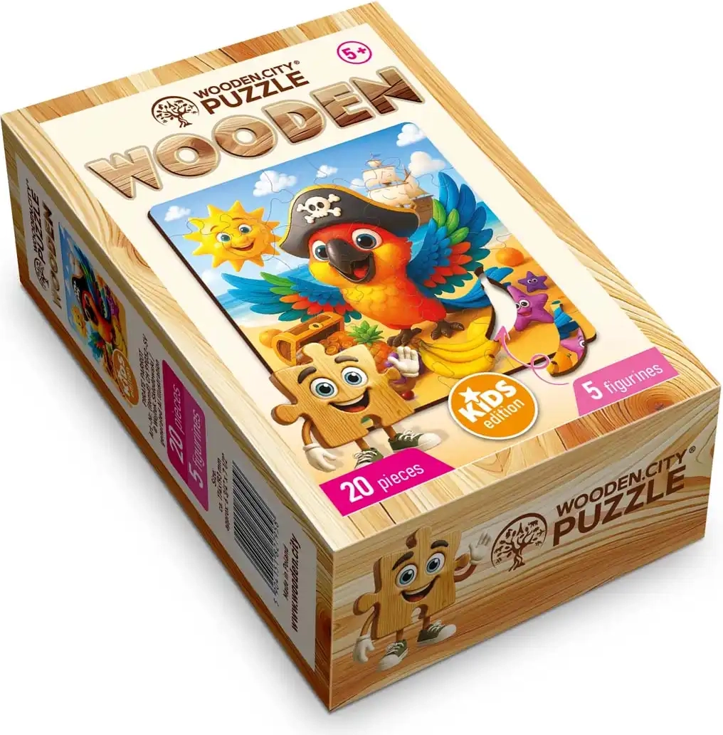 Træpuslespillet WOODEN CITY Piratpapegøje er det ideelle valg til de første puslespilsoplevelser og som en sjov gave. Takket være den omhyggelige udførelse og det smukke motiv vil børn nyde hver brik og gradvist skabe en betagende scene med en papegøje i piratstil.