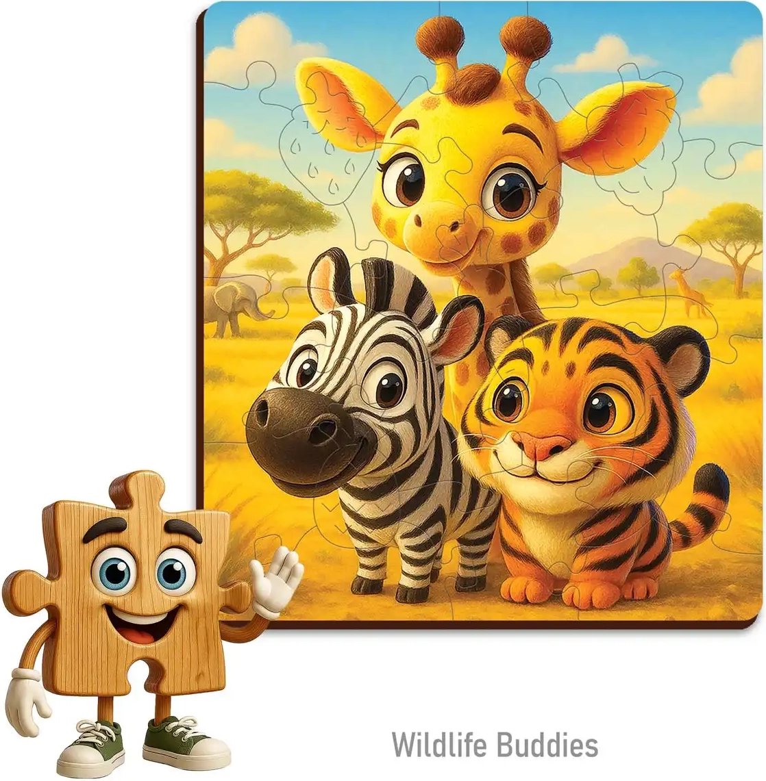 Træpuslespillet Venner fra WOODEN CITY giver børn glæde ved at lægge puslespil og udvikler finmotorikken. Hver brik er fremstillet med høj præcision og omhu for et perfekt pasformende motiv. Laserskæringen sikrer rene og glatte kanter, så brikkerne er behagelige at røre ved og sikre for små hænder.