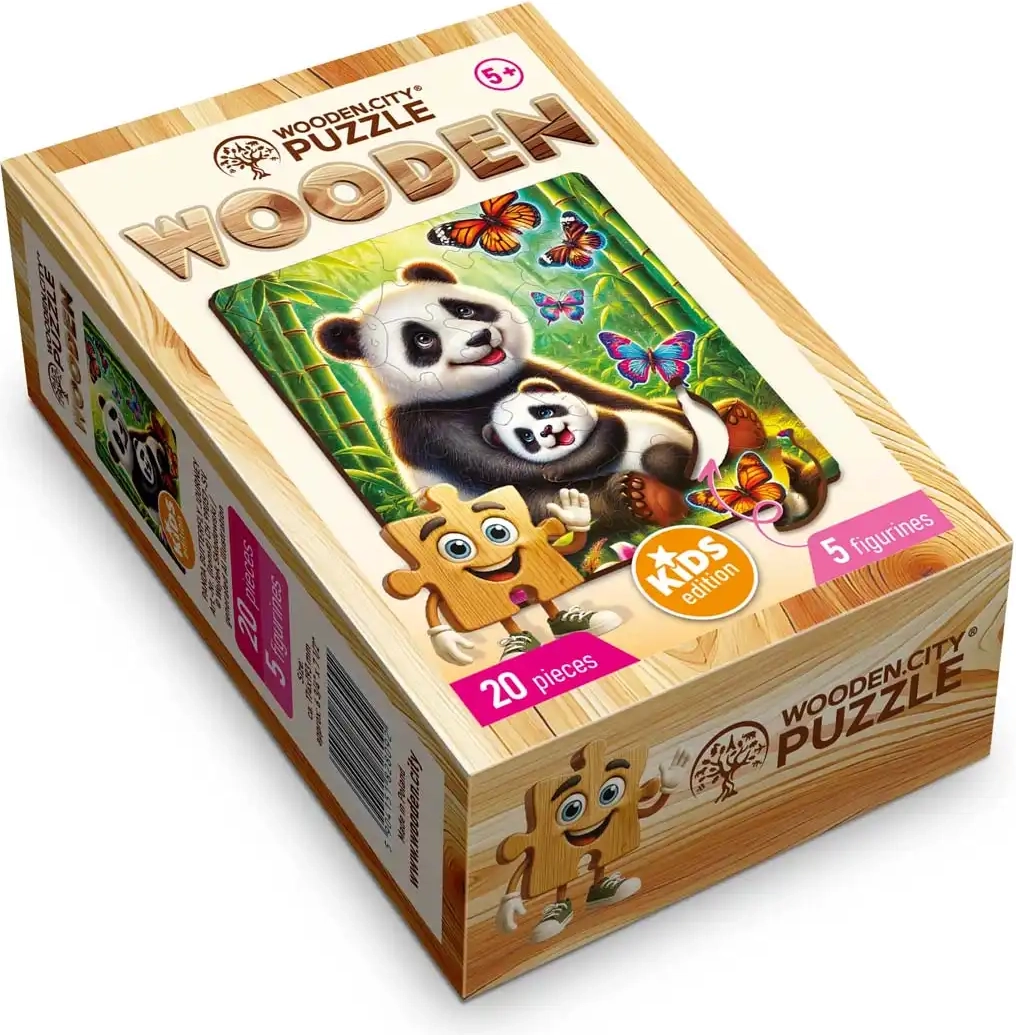 Dette træpuslespil fra WOODEN CITY er et ideelt valg til de første puslespil eller som en sød gave. Takket være den høje kvalitet i slidstærkt træ og glatte kanter ligger brikkerne godt i hånden, og lægningen er sikker selv for yngre børn. Det fortryllende pandamotiv danner efter samling en attraktiv scene på ca. 17,4 × 19,3 cm.