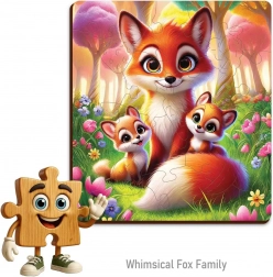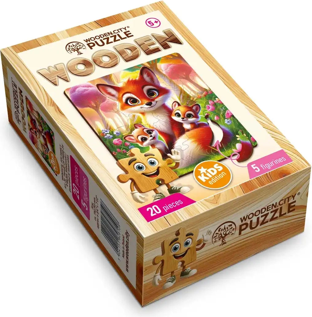 Træpuslespillet WOODEN CITY med motiv af en rævefamilie vil glæde enhver lille dyreelsker. De omhyggeligt udskårne brikker passer perfekt og danner en fortryllende scene, der motiverer børn til at udforske videre.