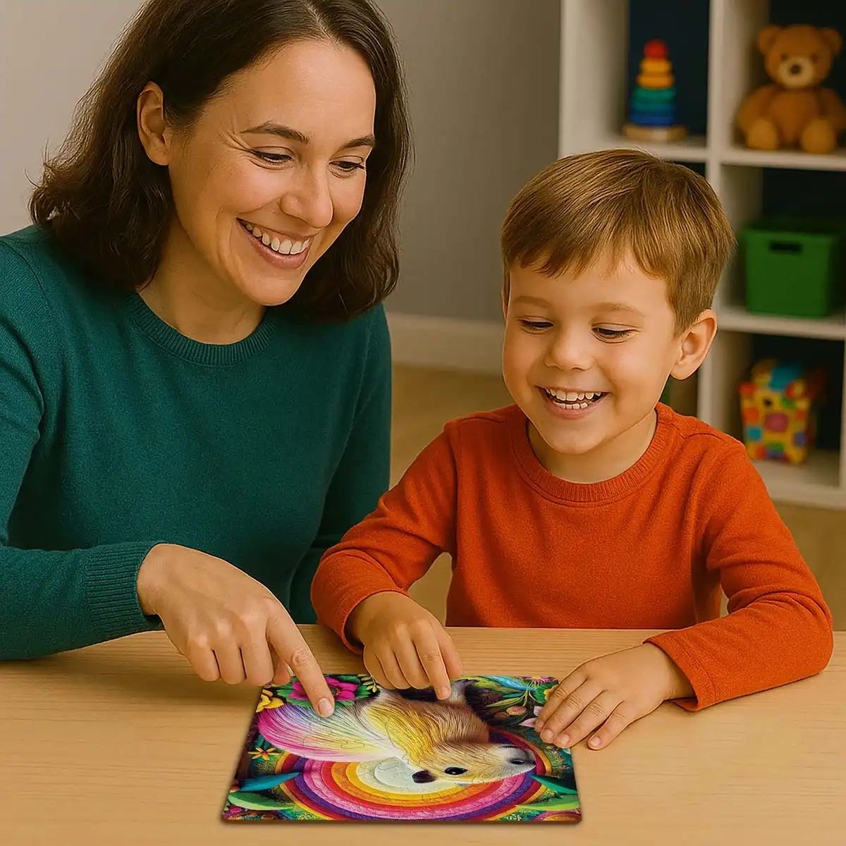 Dette søde puslespil med kapybara-motiv giver børn glæden ved at lægge puslespil og en følelse af succes, når billedet er færdigt. Takket være den høje kvalitet er brikkerne holdbare, præcise og behagelige at håndtere. Ideelt som gave og som første skridt ind i træpuslespilsverdenen.