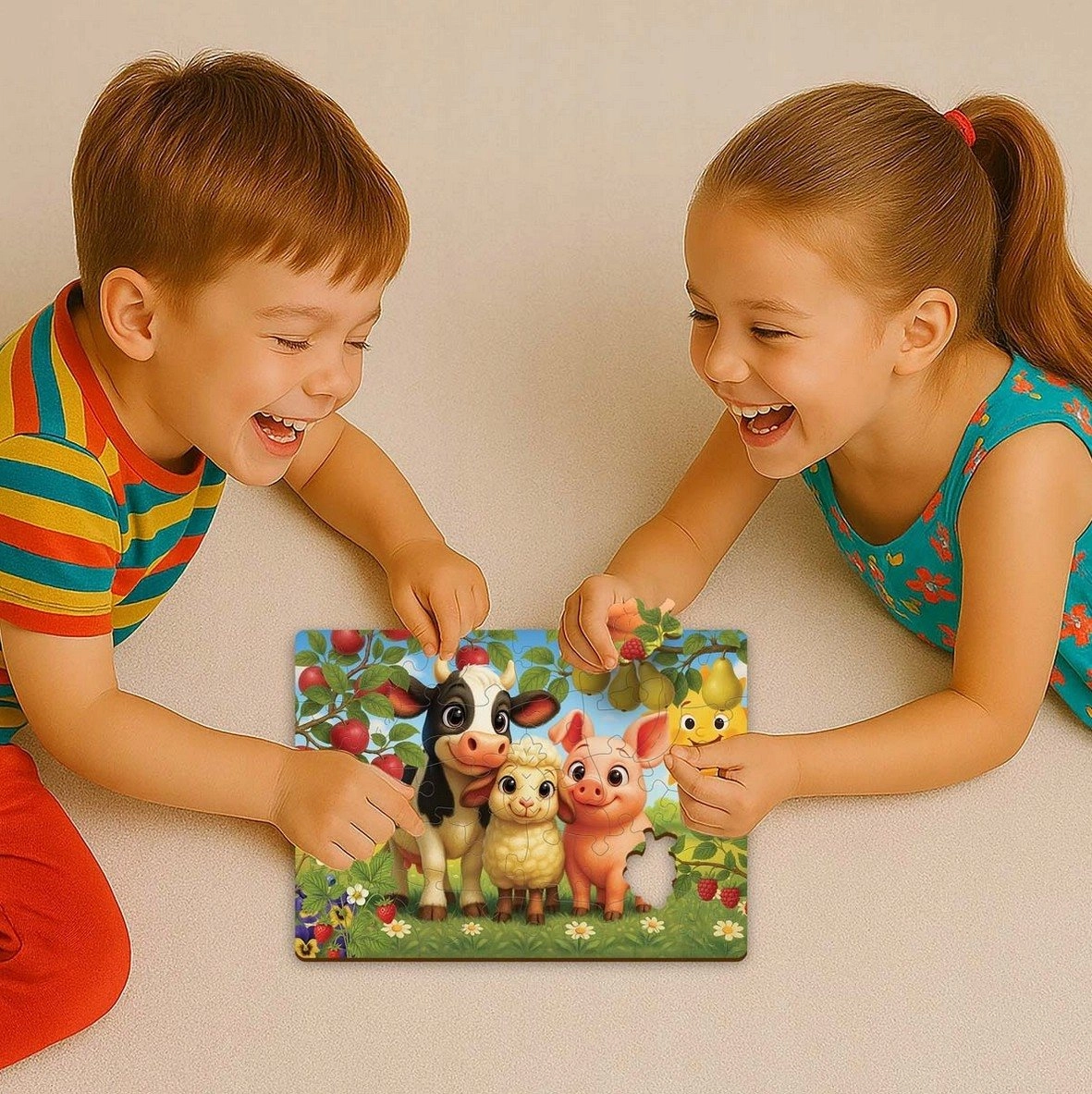 Særlige brikker i dyreform gør lægningen sjovere og støtter genkendelse af former.