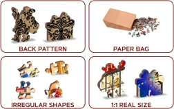 Takket være den laserskårne udformning glider brikkerne let på plads og holder sammen, mens 50 særlige “whimsy”-brikker formet som figurer og genstande tilfører både sjov og udfordring. Puslespillet er miljøvenligt, uden plastemballage, og i æsken finder du også en separat forlæg for nem lægning.