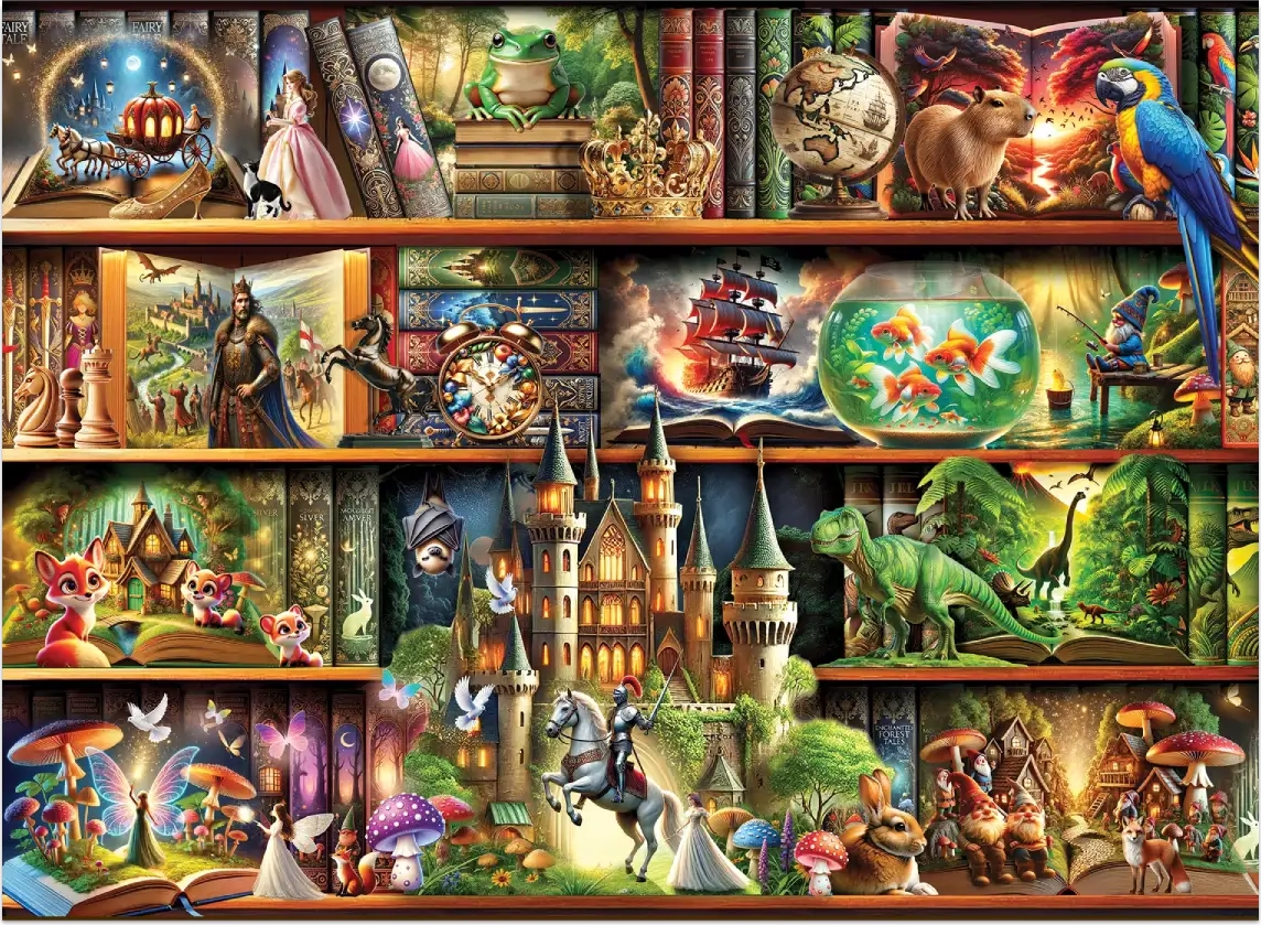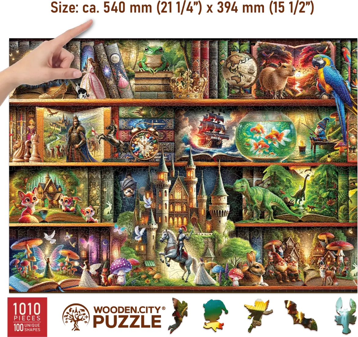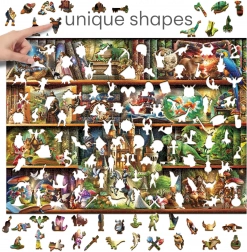 Forkæl dig selv med kreativ afslapning med det originale træpuslespil “Historier på hver hylde”. Takket være den laserskarpe præcision passer brikkerne perfekt sammen, og det færdige motiv holder formen. En forlæg hjælper med orienteringen, og det detaljerige motiv indbyder til at blive opdaget brik for brik.