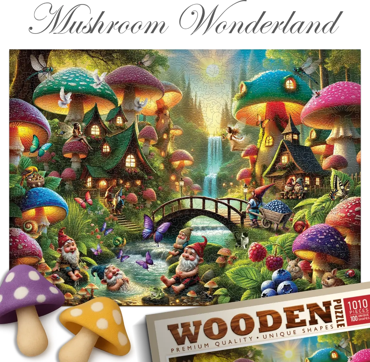 Oplev magien ved at lægge et træpuslespil fra WOODEN CITY, som tager dig med til svamperigets vidundere. Der venter 1010 brikker, heraf 100 unikt formede, samt glatte, præcist udskårne kanter takket være laserteknologi. Inkluderer en separat skabelon, og hele pakken er eko-venlig, 100% plastfri – den ideelle gave til enhver lejlighed.