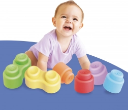 Sættet med bløde byggeklodser fra MOMY er ideelt til børn fra 6 til 36 måneder. Det indeholder i alt 28 store, farverige dele af sikkert, let parfumeret materiale, der understøtter sanseudviklingen. Klodserne har afrundede hjørner og er lette for små hænder at gribe om. Børn kan nemt sætte klodserne sammen, stable og skabe – denne leg udvikler finmotorik, hånd-øje-koordination og fantasi. Den praktiske, lukbare pose muliggør nem opbevaring og transport både hjemme og på farten.