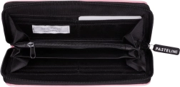 Stilfuld rosa pung med gennemgående lynlås og minimalistisk PASTELINI-logo. Rummer sikkert både sedler og kort og ligger godt i hånden.