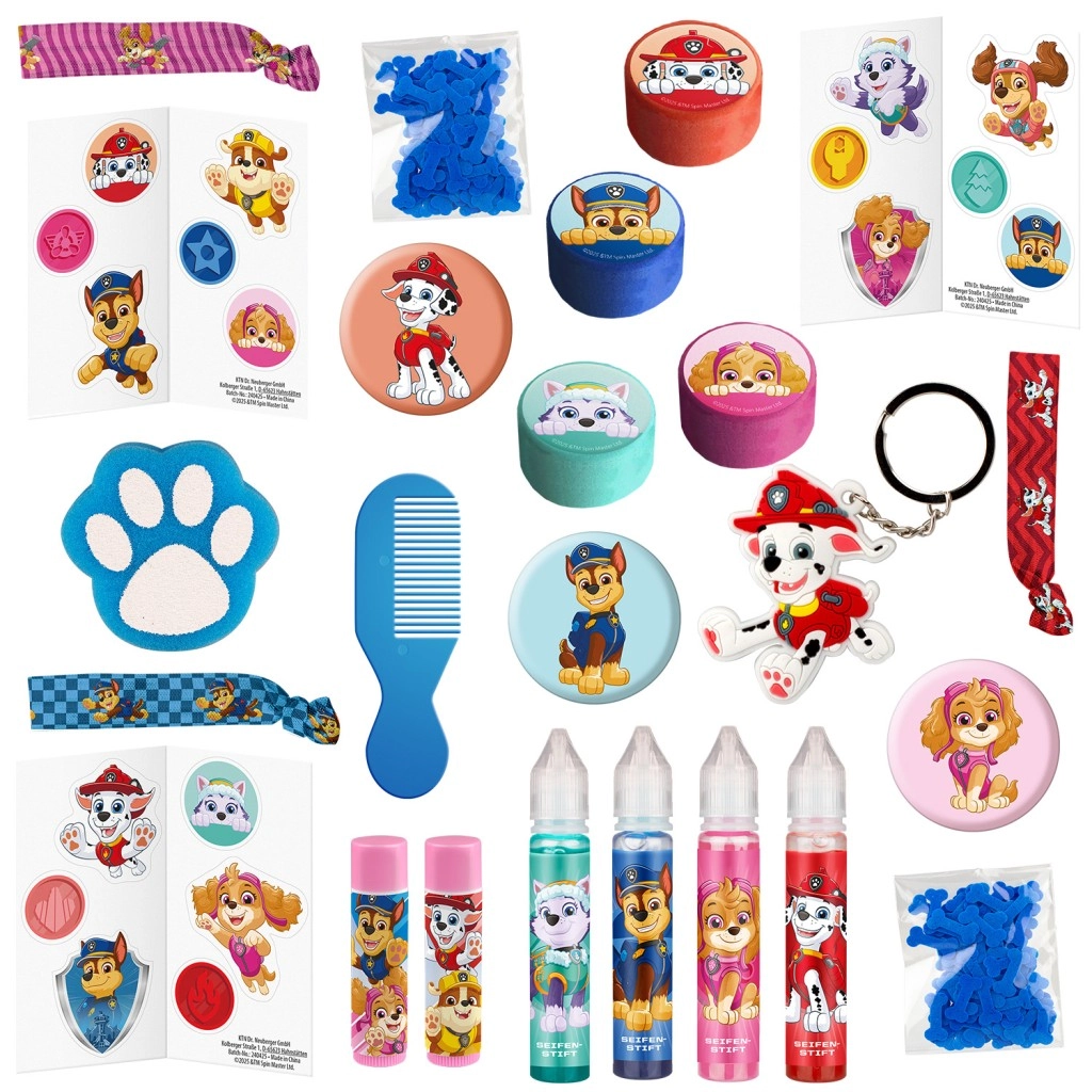 PAW PATROL adventskalenderen bringer børn daglig glæde i form af praktiske og legende overraskelser. Takket være det farverige mix af kosmetik og tilbehør bliver ventetiden til jul fuld af dufte, bobler og sjov. Alt er designet til børn og deres yndlingshelte fra Paw Patrol.