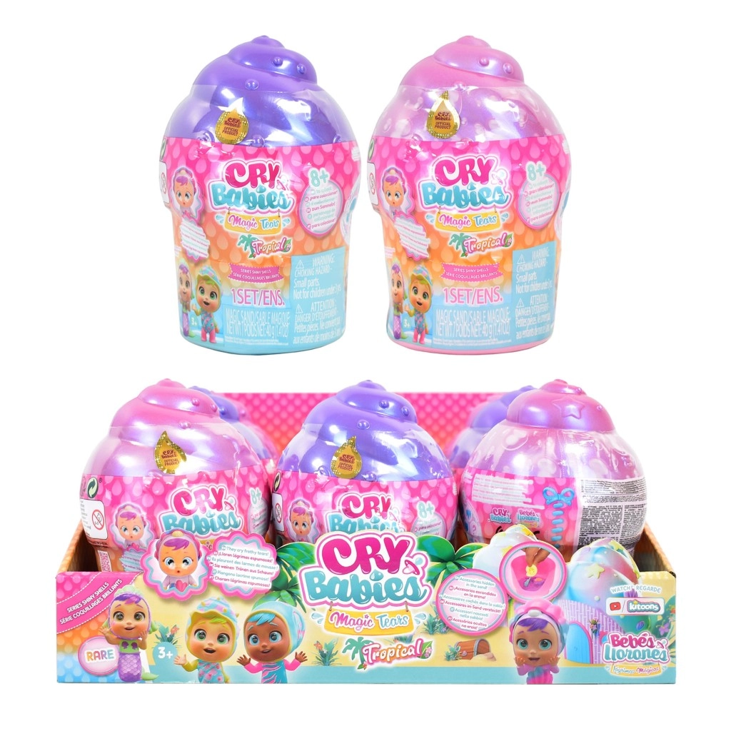 Oplev magien ved de samlerbare dukker Cry Babies Magic Tears Shiny Shell, gemt i en perlemorsskinnende kapsel formet som en musling. Hver pakke byder på over 9 overraskelser skjult i sandet og en interaktiv tåreeffekt, når flasken fyldes, og dukkens mave trykkes. Saml alle 7 nye figurer – Marina, Misty, Shelly, Sandy, Coraline, Sia og Kai – og nyd timevis af leg og unboxing-sjov.