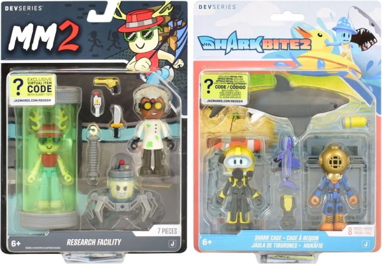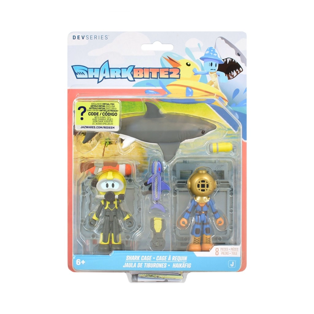 Træd ind i ROBLOX-verdenen med et temasæt inspireret af udgaven Shark Bite 2. De to actionfigurer af dykkere (Diver og Deep Sea Diver) suppleres af et detaljeret hajbur til samling og en figur af en stor hvidhaj, som giver enhver scene ekstra spænding. Med den eksklusive kode kan du desuden låse op for virtuelt indhold og udvide dine spilmuligheder.