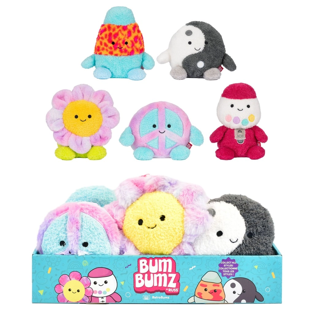 Hver plys leveres med sit eget samlermærke, der angiver navn, nummer, Bumz-dato, superlativ og viser andre figurer fra serien, som du kan samle og bytte. Retro Bumz er fantastiske ledsagere på værelset, på farten og som en original gave til fans af søde og stilede plysdyr.