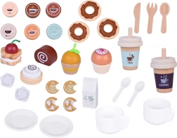 Det rige tilbehør omfatter kopper med underkopper og skeer, to-go-kopper med låg (Tea, Coffee), mælkekarton, bestik, forskellige kager, muffins, småkager og chokolader samt en enkel menu. Alt er perfekt tilpasset små hænder og understøtter finmotorik, øje–hånd-koordination og sociale færdigheder.