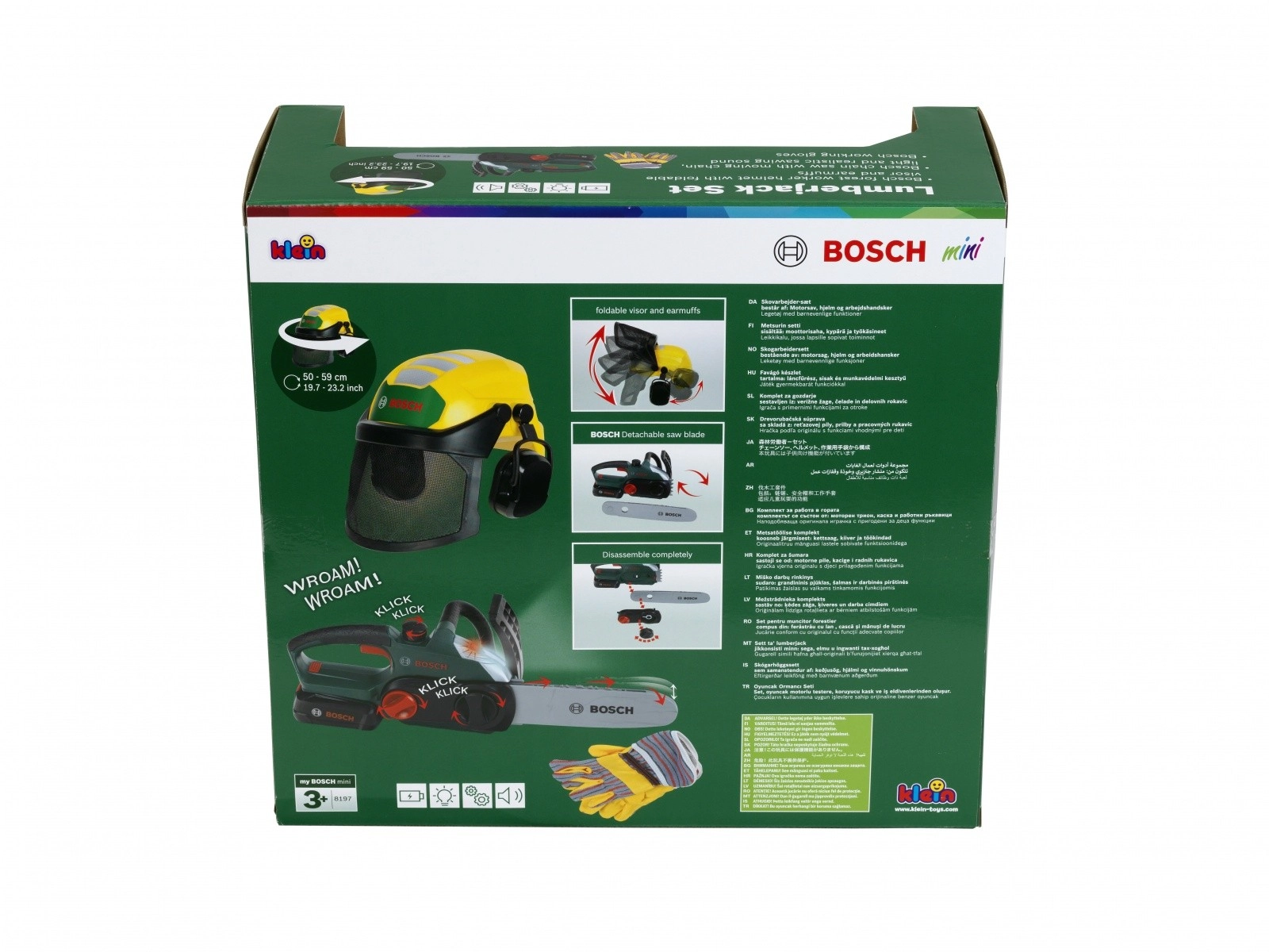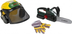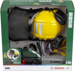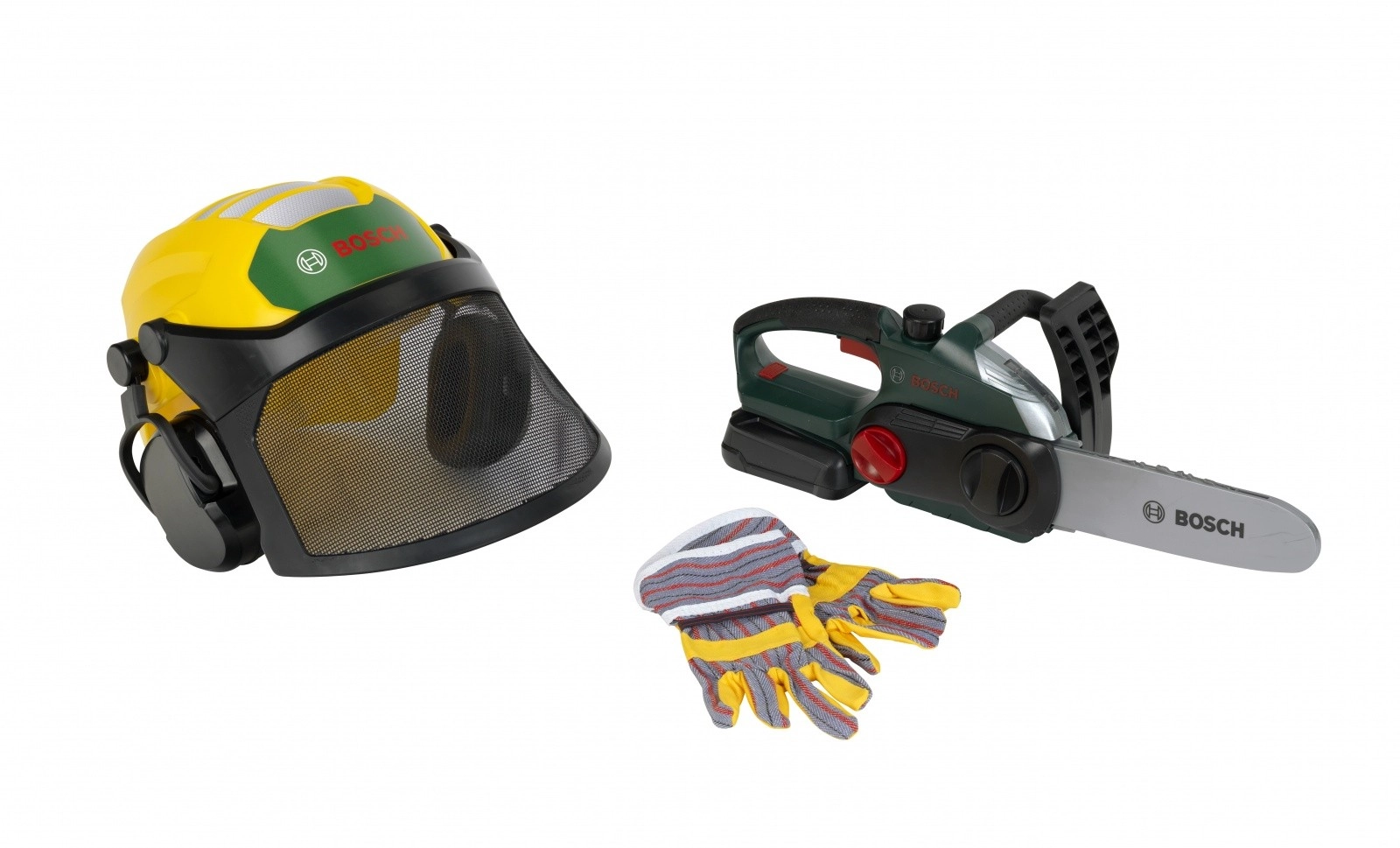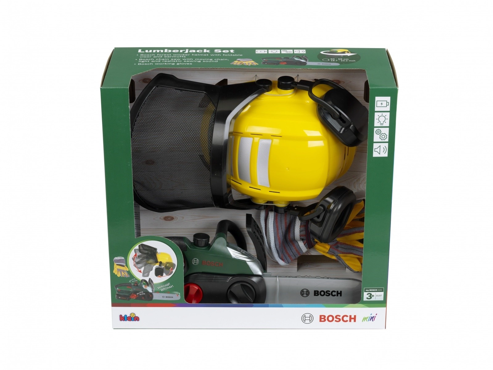 BOSCH skovhuggersæt til børn er designet til sikker og stimulerende leg. Den elektroniske motorsav afgiver autentisk skærelyd og ledsagende blinkende lys, når sværdet er monteret, hvilket simulerer et rigtigt værktøj. Den justerbare hjelm med visir og integrerede “høreværn” øger realismen og lærer børn grundlæggende sikkerhed.
