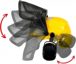 Let hjelm med vipbart netvisir og side-“høretelefoner” lærer børn grundlæggende sikkerhed og giver legen et realistisk præg.