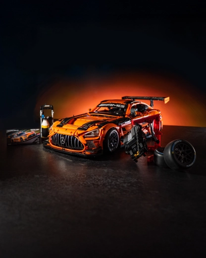 Byg den ikoniske racerbil MERCEDES-AMG GT3 i skala 1:8 fra CaDA Master-serien. Denne detaljerede model med 5466 dele tilbyder en 8-trins gearkasse, uafhængig og justerbar affjedring, styring af forhjulene, åbnings- og låsbare døre, modulær motor og motorhjelm samt LED-belysning. Den virkelige perle er den pneumatiske donkraft til simulering af pit-stop og hjulskifte – maksimal teknisk oplevelse både under bygning og udstilling.