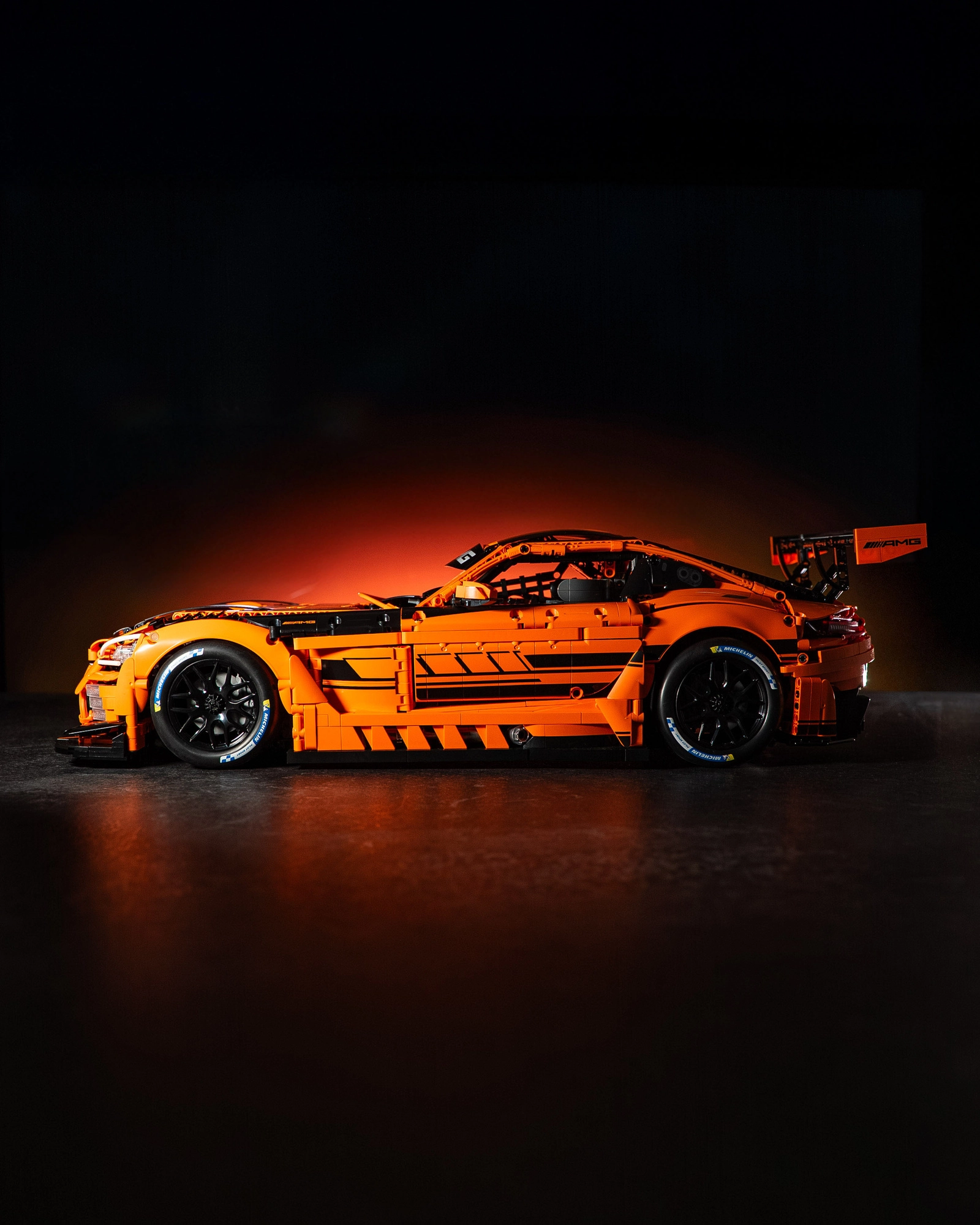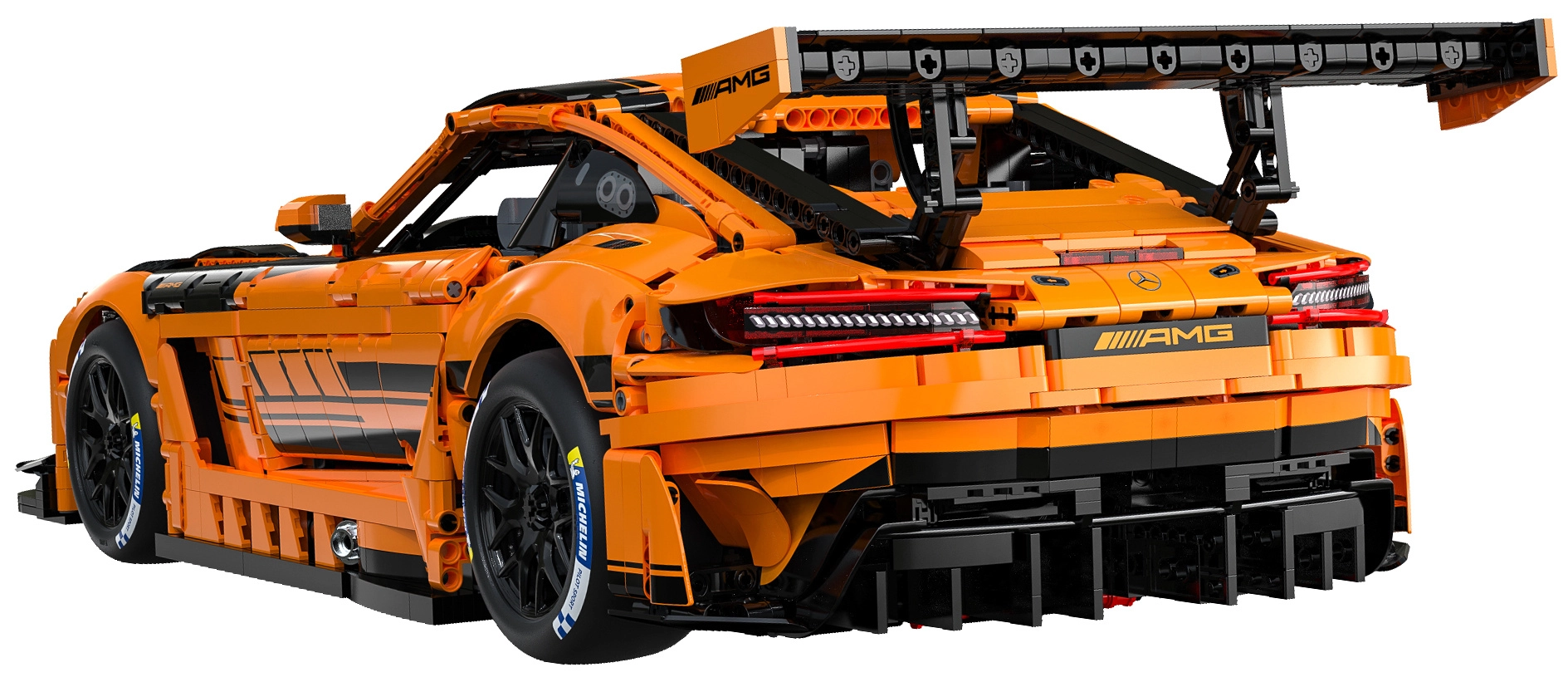 Flere LED-moduler understreger det raceprægede look på den licenserede MERCEDES-AMG GT3 med præcise prints og realistiske aerodynamiske elementer.